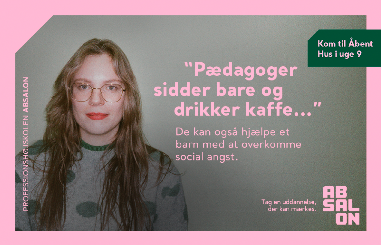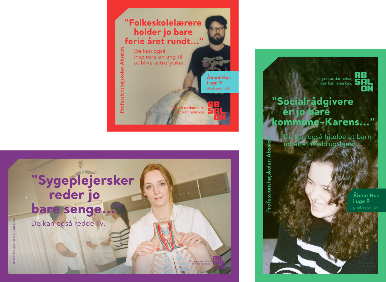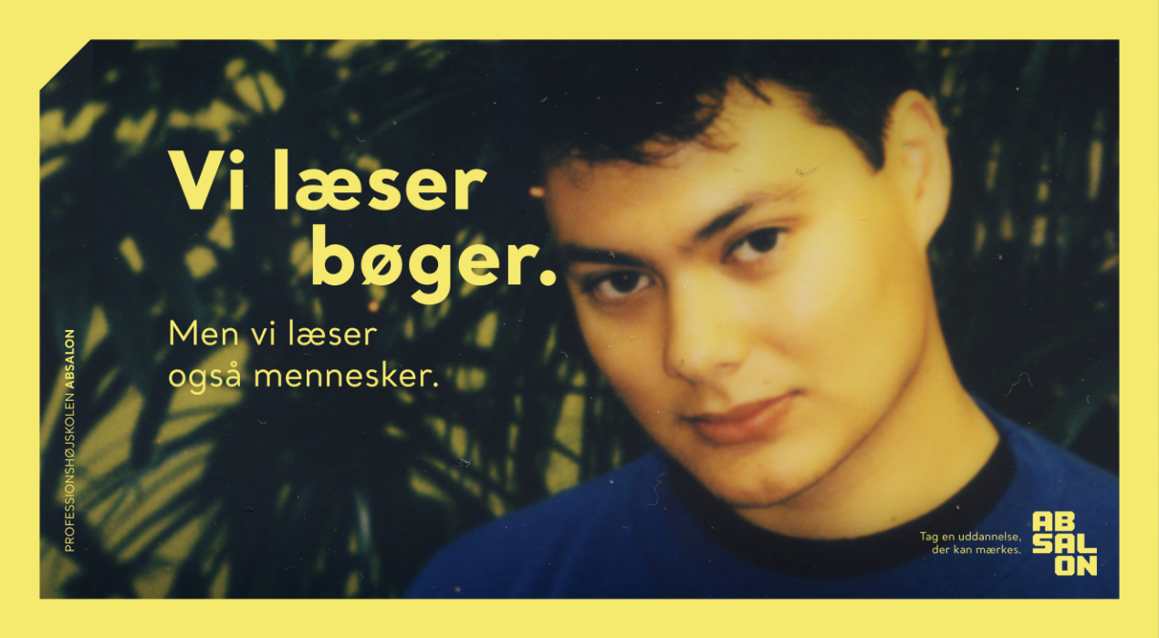 Client: University College Absalon Our role: Rebranding, Creative concept development, copywriting, art direction, photo contept