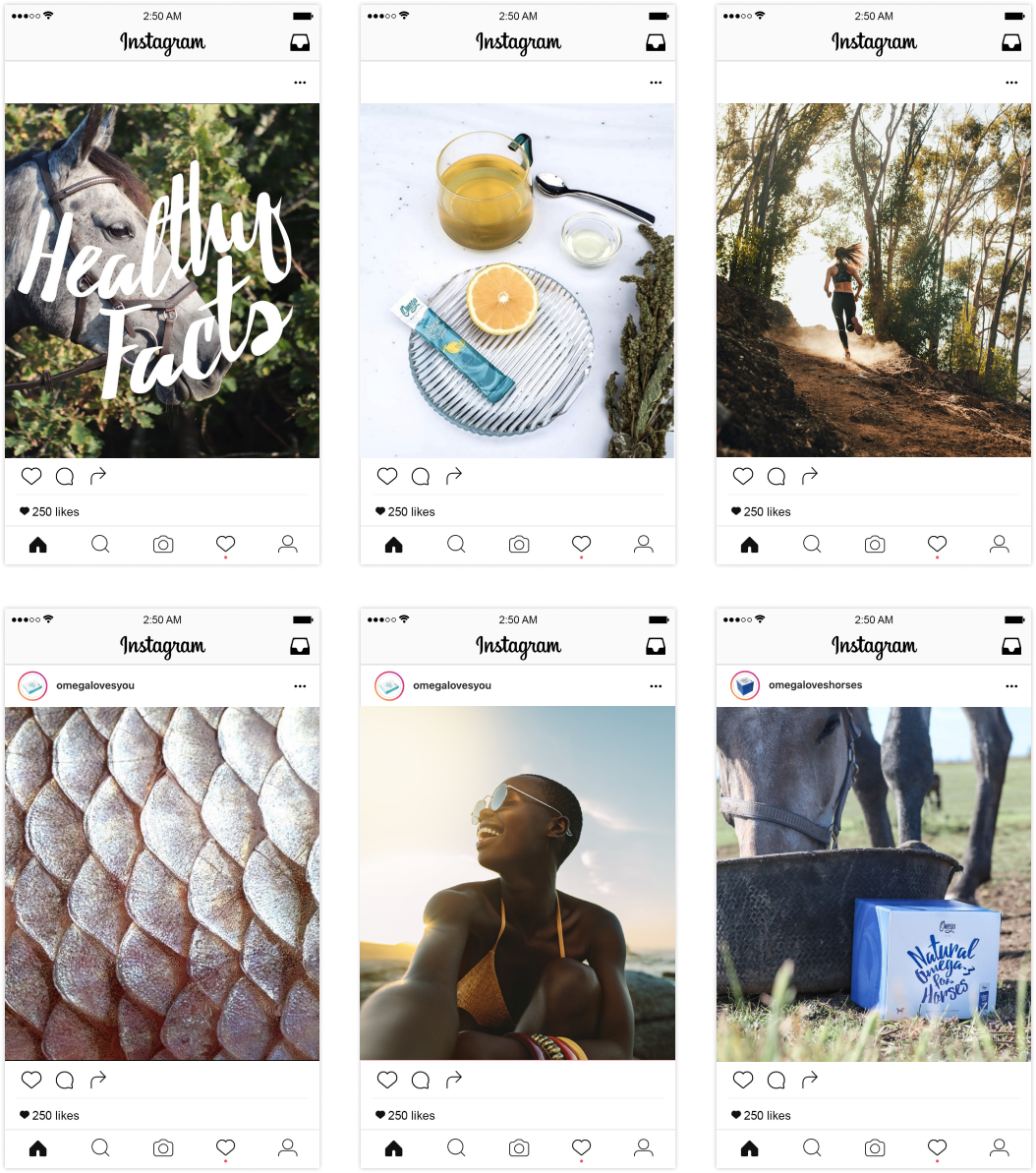 We developed brand concept and identity, including corporate logo, as well as packaging design and reseller marketing materials for the three main segments, horses, pets and humans, that would reflect and support the corporate ambition of marketing Omega-3 oils as a fresh and easy nutritional supplement.